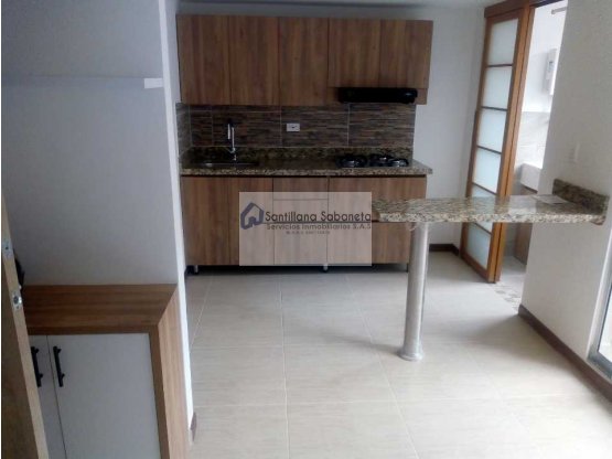 Arriendo apartamento con piso en ceramica, con cocina  integral,cuenta con gabinetes inferrioes y supereriores en madera, con luz natural por ventanal tipo piso techo. La unidad cuenta con servicio de transporte urbano, con zona verde, zona deportiva y gimnasio al aire libre,piscina